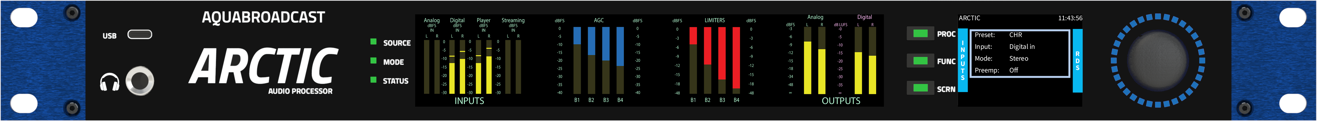 The Aqua Broadcast Arctic is more than a processor; it is a fully integrated broadcast solution. By combining state-of-the-art DSP processing, intuitive design, extensive connectivity, advanced automation, and global monitoring, the Arctic empowers broadcasters to deliver consistent, professional-quality audio with total confidence—for stations of any size or scale.