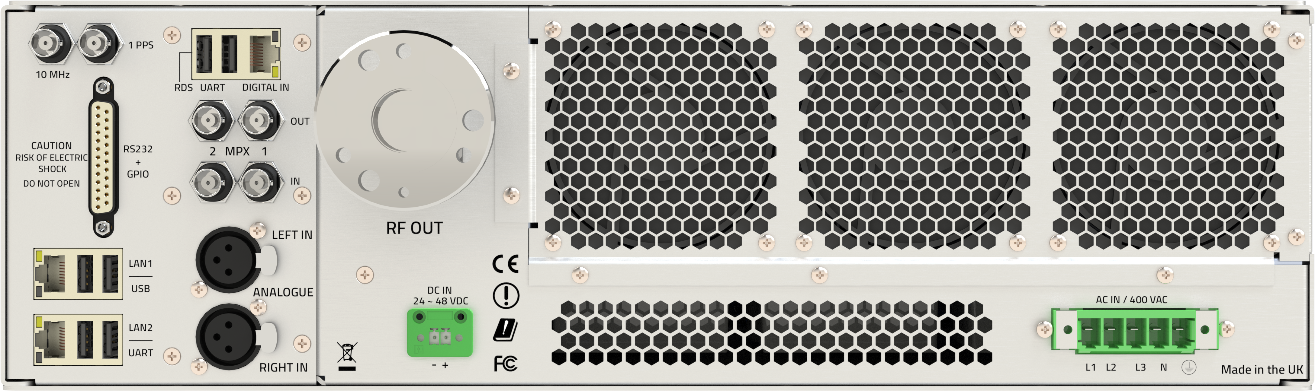 | Digital MPX | BNC, 10kΩ impedance, level adjustable 0-12dBu |
