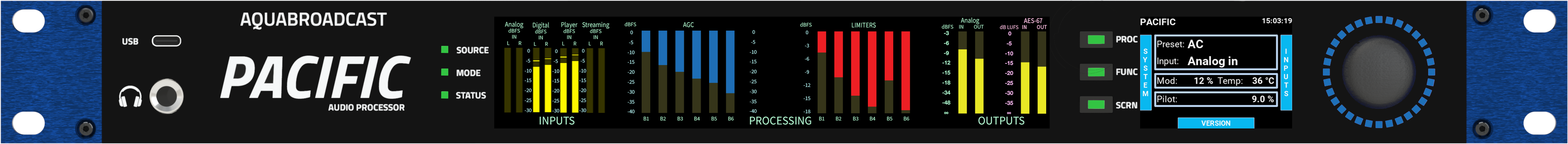 The Aqua Broadcast Pacific is more than a processor; it is a fully integrated broadcast solution. By combining state-of-the-art DSP processing, intuitive design, extensive connectivity, advanced automation, and global monitoring, the Pacific empowers broadcasters to deliver consistent, professional-quality audio with total confidence—for stations of any size or scale.
